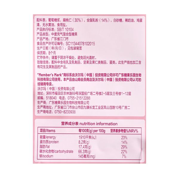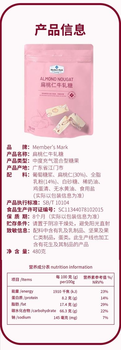 山姆直送-扁桃仁牛轧糖 480g Almond Nougat Sam's Club(M22777-01)