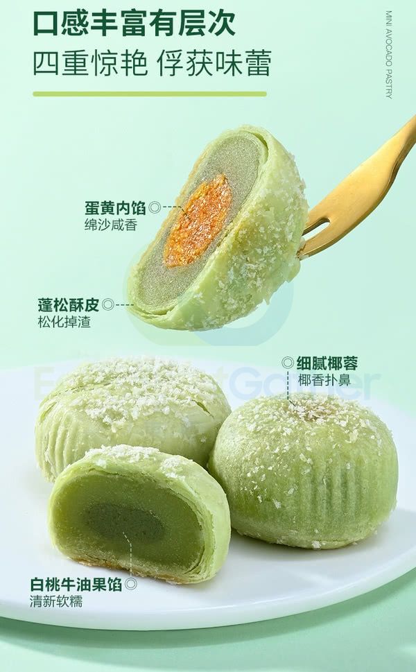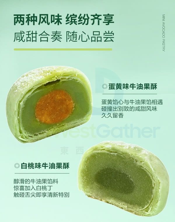 蛋黃餡心與牛油果餡相遇,碰撞出別致的鹹甜風味,久久留香