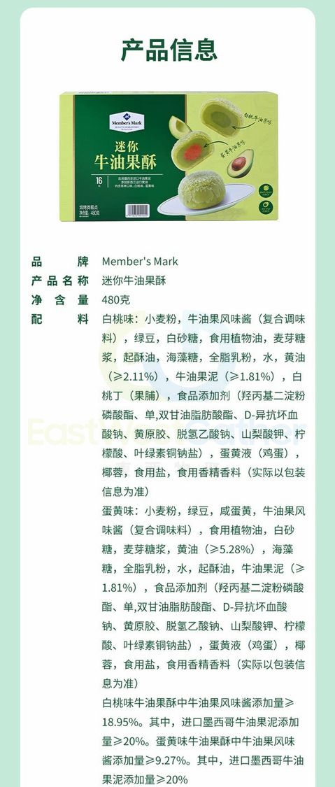 山姆直送-迷你牛油果酥 480g 白桃味/蛋黃味 即食糕點零食 獨立包裝 Avocado Crispy White Peach/Egg Yolk Instant Pastry (N22086-01)