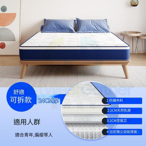 包送貨-舒適可拆款(厚度約24CM)腰臀加強 加密獨立彈簧 藍白邊135cm*200cm記憶棉床褥 護脊獨立彈簧床墊 彈弓壓縮乳膠軟墊 Spring Mattress(N22098-60)