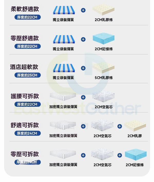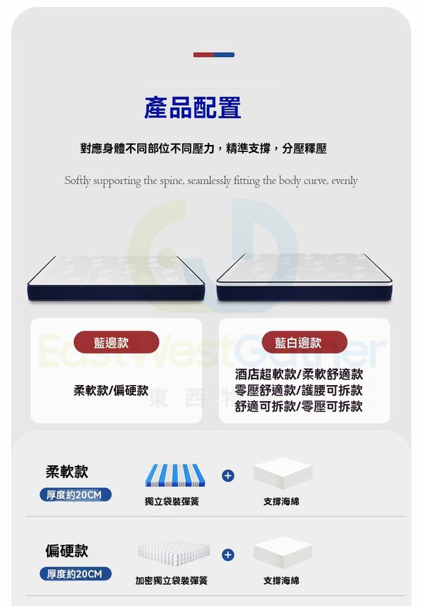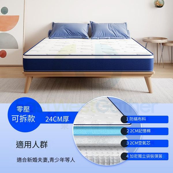 包送貨-零壓可拆款(厚度約24CM)腰臀加強 加密獨立彈簧135cm*190cm記憶棉床褥 護脊獨立彈簧床墊 彈弓壓縮乳膠軟墊 Memory Cotton Mattress(N22098-68)