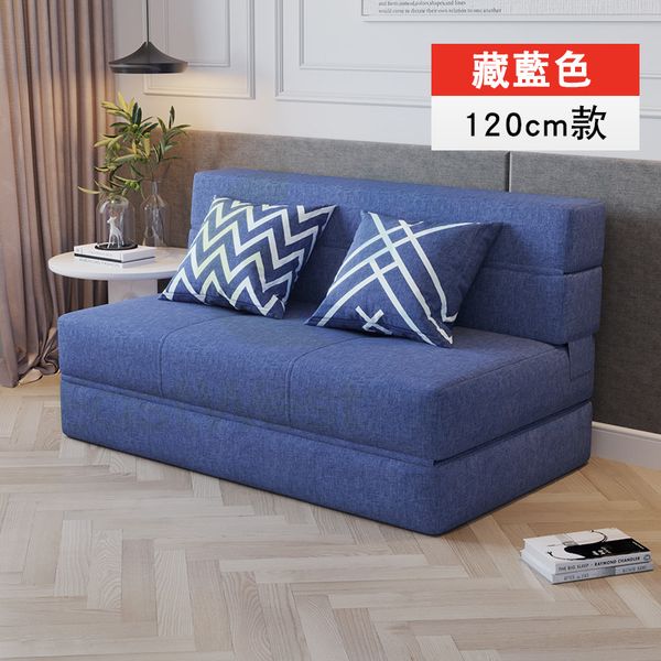 包送貨-梳化床 折疊沙發床【藏藍色海綿款 120cm】單人雙人 Folding sofa bed 日式小戶型布藝梳化 fabric sofa 簡約經濟型 多規格 免安裝(N22120-09)