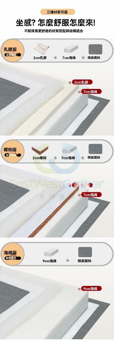 海綿版/乳膠版/椰棕版,三款床褥材質可選