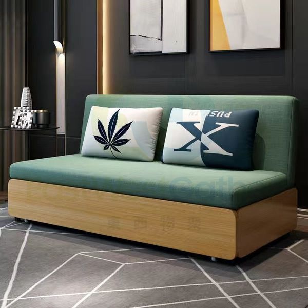 包送貨-梳化床 日式折疊沙發床 Foldling sofa bed 海綿版(帶抽屜或儲物)豆綠色/原木色底框 1.2米 收納儲物兩用梳化 小戶型單人雙人床 布藝(N22128-80)
