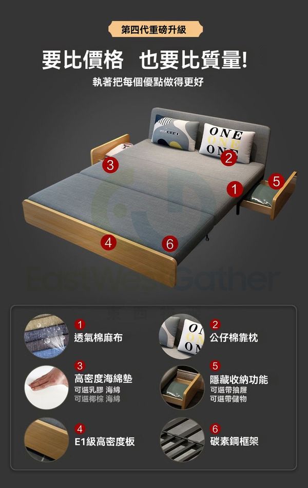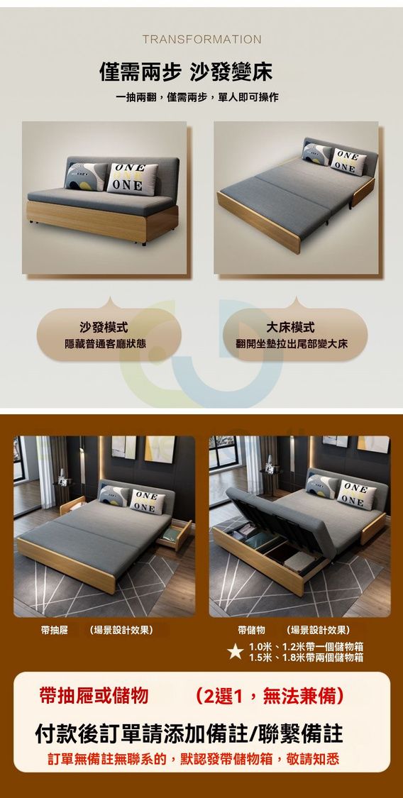 梳化床 日式折疊沙發床 收納儲物兩用梳化 小戶型單人雙人床 布藝多功能