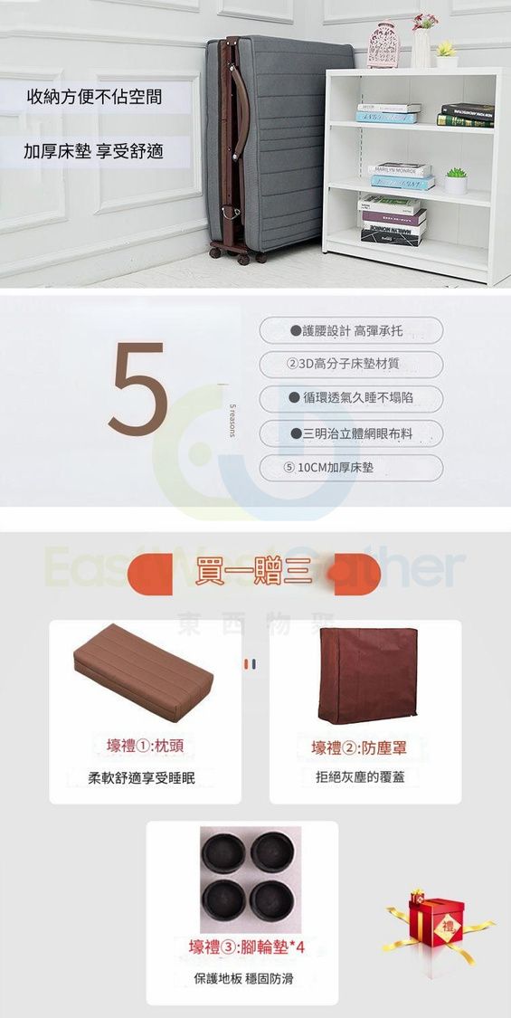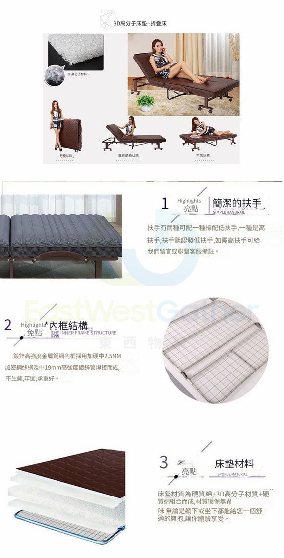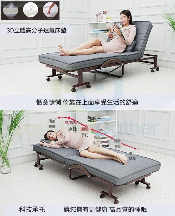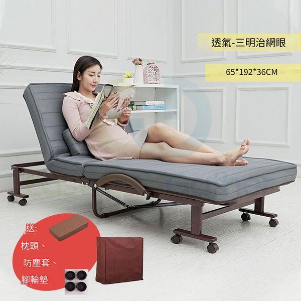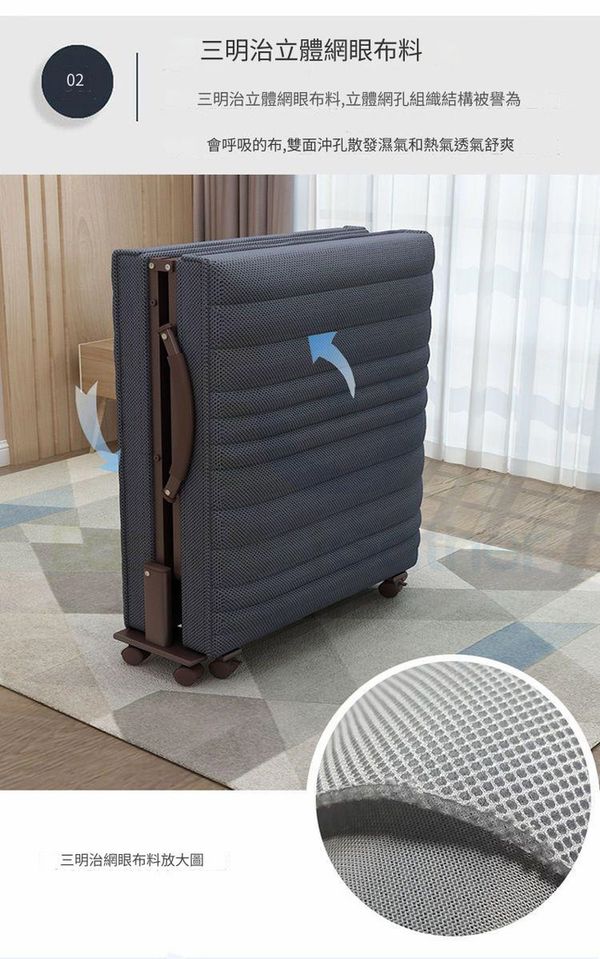 包安裝送貨-摺疊床 午休折疊床 灰色三明治立體網眼 65*192cm Folding bed 辦公室單人午睡 office nap bed 雙人租房家用 陪護床 保姆床(N22130-01)