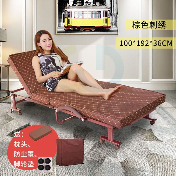 包安裝送貨-摺疊床 午休折疊床 棕色刺繡 100*192cm Folding bed 辦公室單人午睡 office nap bed 雙人租房家用 陪護床 保姆床(N22130-15)