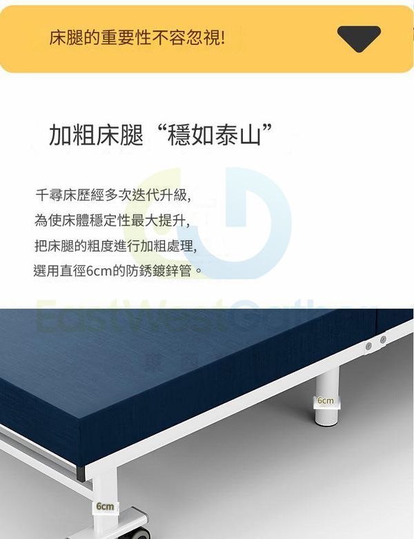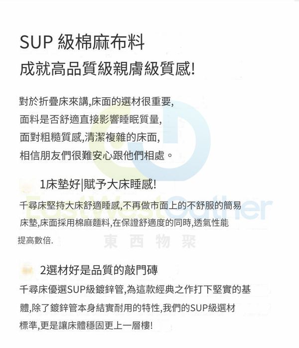 千尋床優選SUP級鍍鋅管,為這款經典之作打下堅實的基礎,除了鍍鋅管本身結實耐用的特性,SUP級選材標準,更是讓床體穩固更上一層樓!