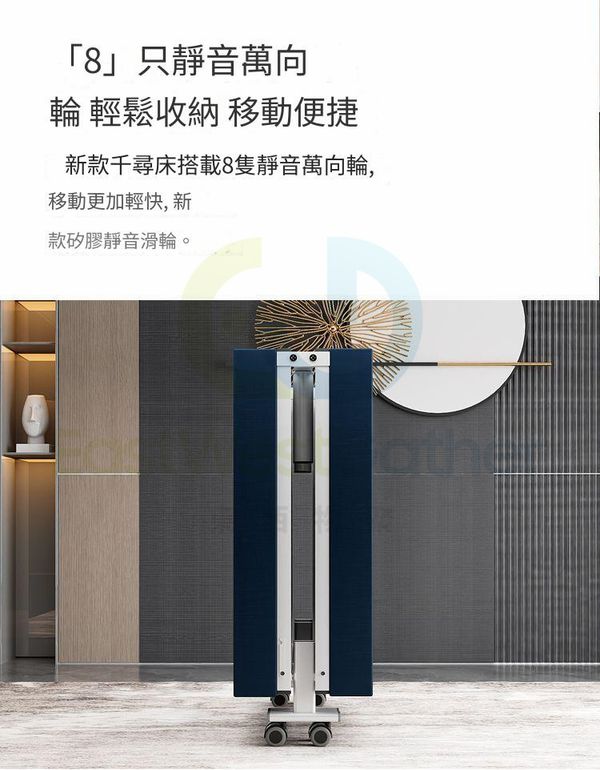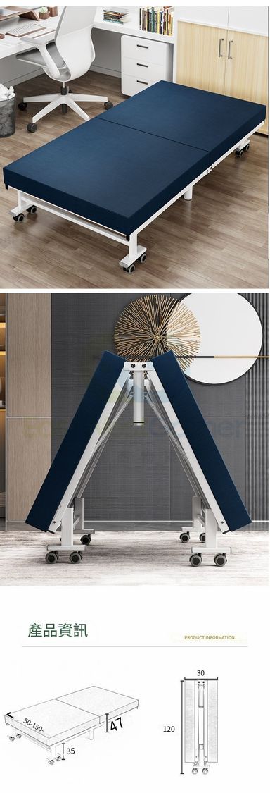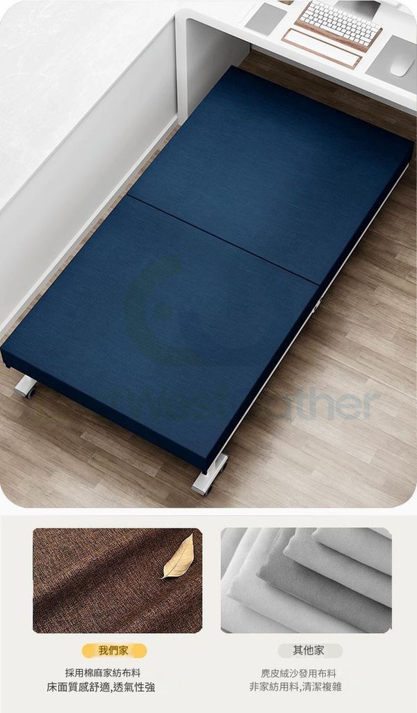 包送貨-折疊床 單人摺疊床 Folding bed 乳膠款 8輪輕奢藍灰色 床高45cm-寬度100cm 簡易可移動 午休床 陪護床 舒適床褥床墊 小戶型租房家用(N22163-05)