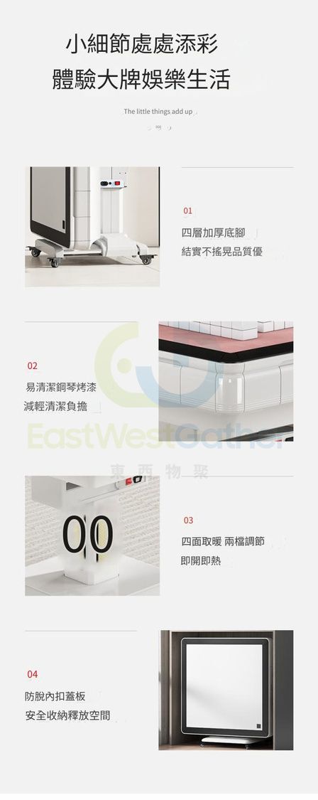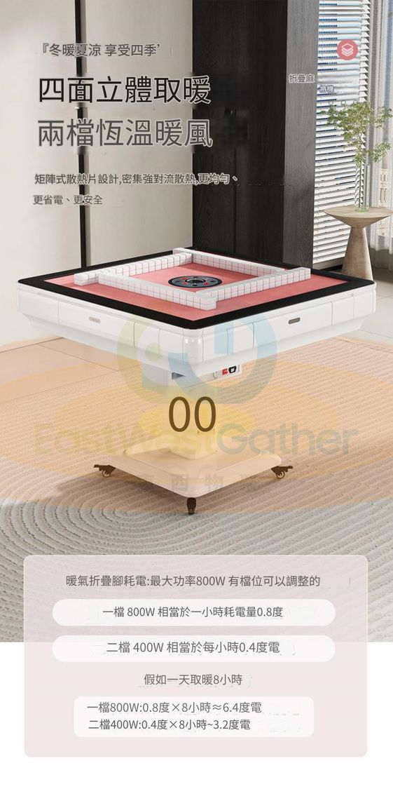 包安裝送貨-電動麻將機 電動麻雀枱 Electronic Mahjong Machine 靜音取暖四口機-珍珠白 電動麻雀機 Folding Mahjong Table (N22164-13)