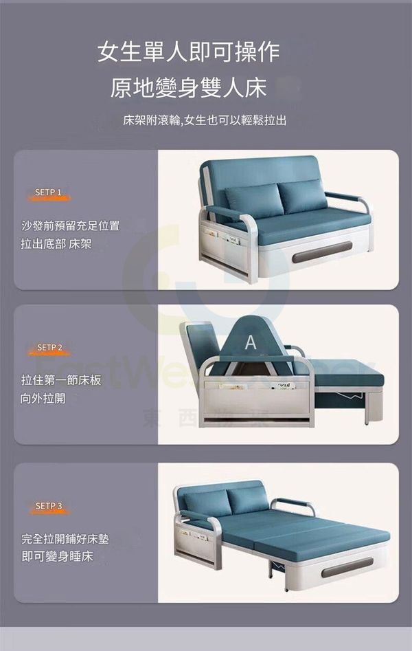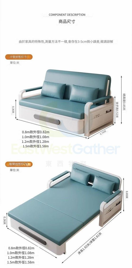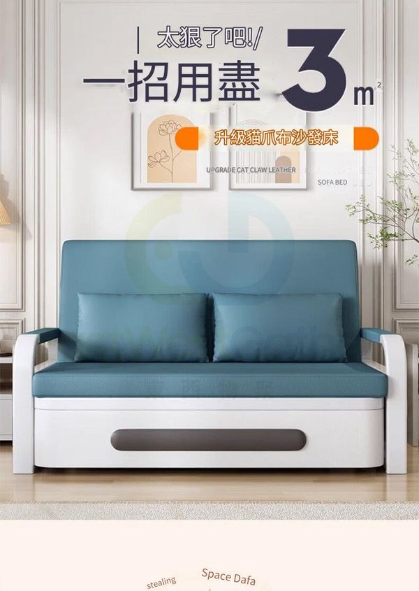 包安裝送貨-梳化床 兩用折疊儲物沙發床 普通5cm海綿+2cm乳膠 1m寬 午休床 Folding Sofa bed 小戶型收納梳化 多功能摺疊單人雙人床 客廳辦公室(N22166-08)