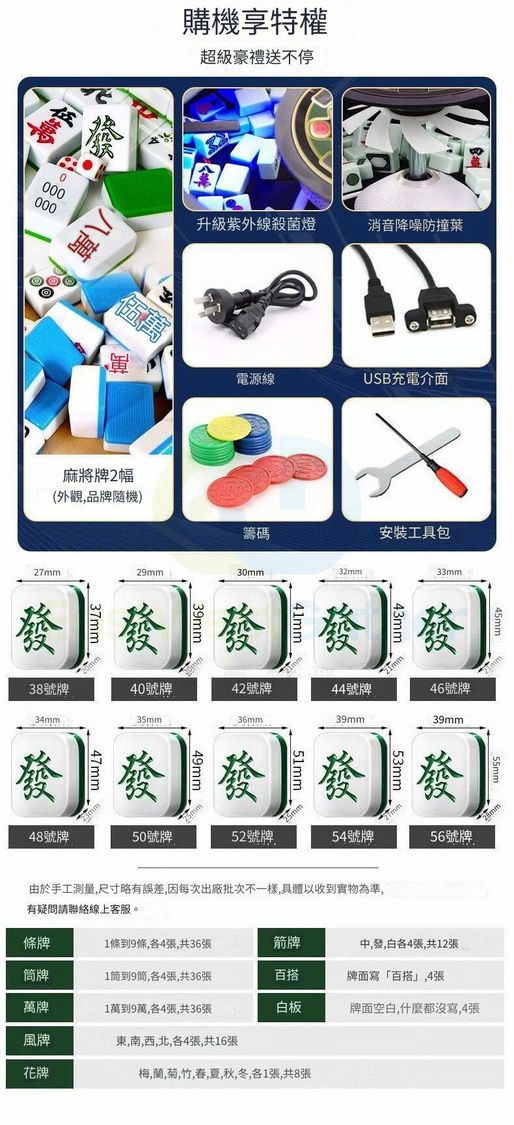 包安裝送貨-電動麻將機 電動麻雀枱 S14香檳金【天選主機】低音-四面取暖牌號:56號 張數:108張 電動麻雀機(N22167-254)