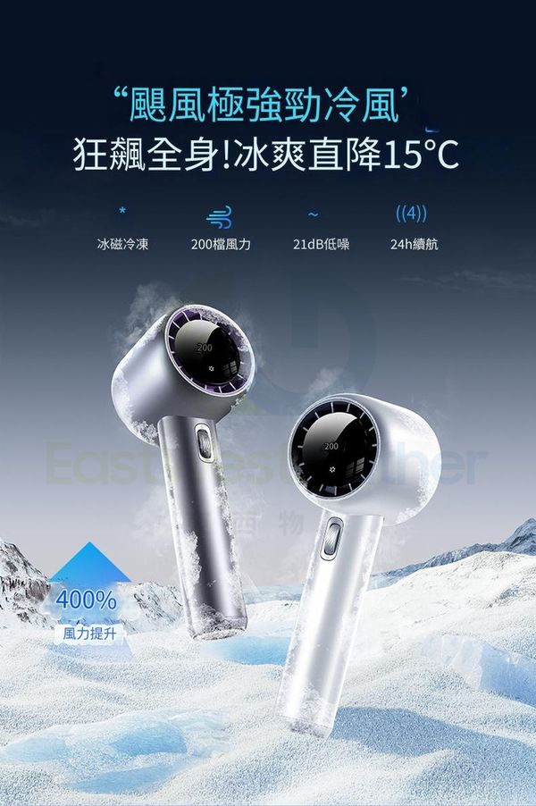 包送貨-便攜風扇 充電式無線手提風扇 手持高速風扇 portable fan 迷你風扇 【菱花白】16℃空調冷風❄199檔澎湃風力❄消音電機❄充1次用7天 10000mAh(N22200-06)