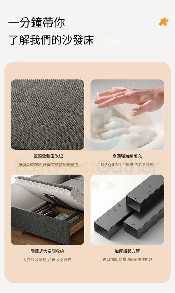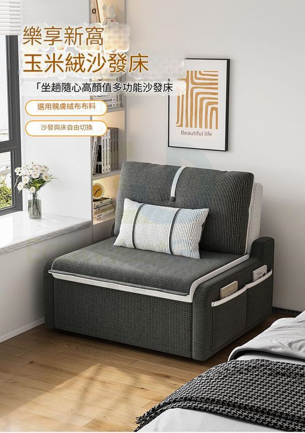 樂享新窝,玉米绒沙發床,坐躺隨心高顏值多功能沙發床