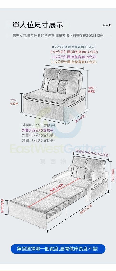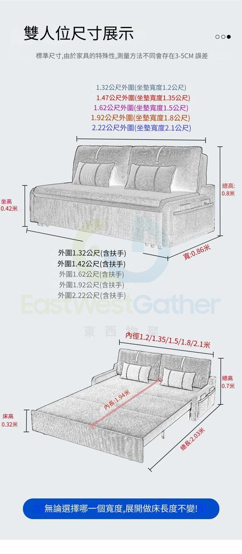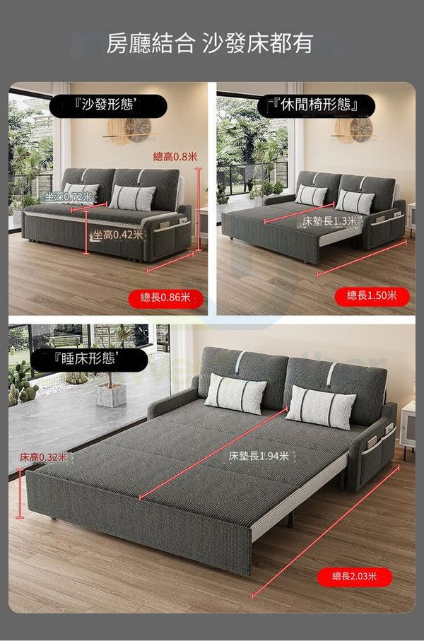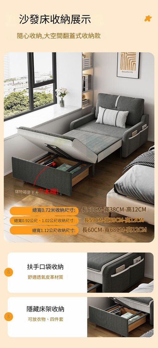 梳化床 兩用折疊儲物沙發床 午休床 小戶型收納梳化 多功能摺疊單人雙人床 客廳辦公室