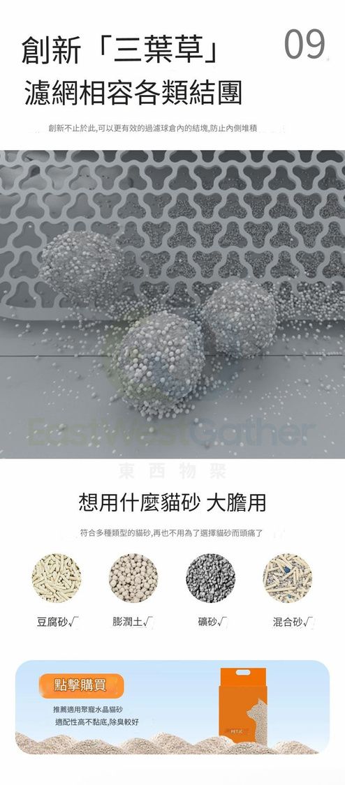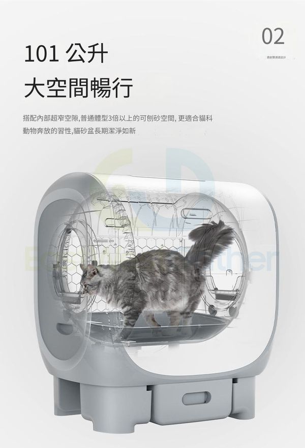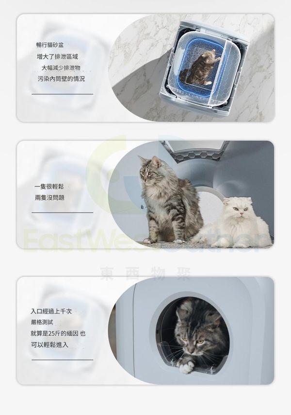 搭配內部超窄空隙,普通體型3倍以上的可刨砂空間,更適合貓科動物奔放的習性,貓砂盆長期潔淨如新