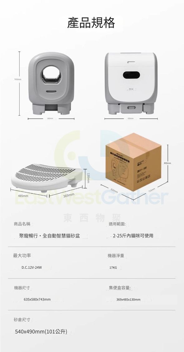 暢行自動貓砂盆Pro版(支持APP遠端控制) 包送貨-電動貓砂盆 智能貓廁所 自動清潔貓砂盆 Smart cat toilet 電動鏟屎機 貓砂盒 超大號貓咪用品(N22212-03)
