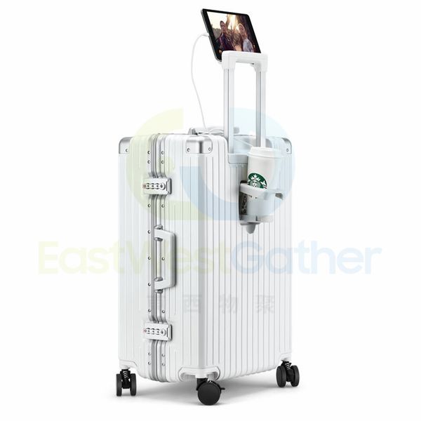 Suitcase USB charging + water cup holder + mobile phone holder + shock absorber brake wheel travel suitcase trolley case