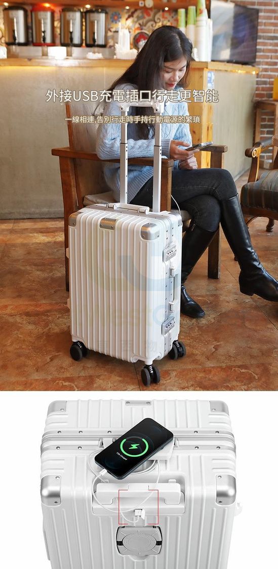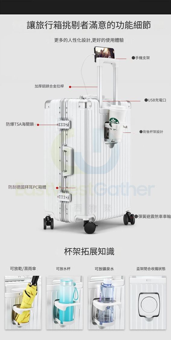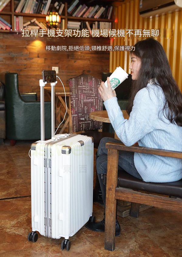行李箱 USB充電+水杯座+手機支架+避震煞車車輪 旅行喼 行李箱 拉桿箱