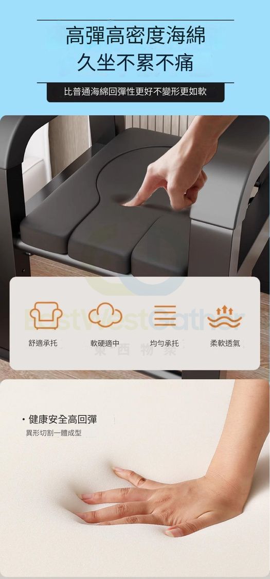 High elasticity and high density sponge, no fatigue or pain after sitting for a long time