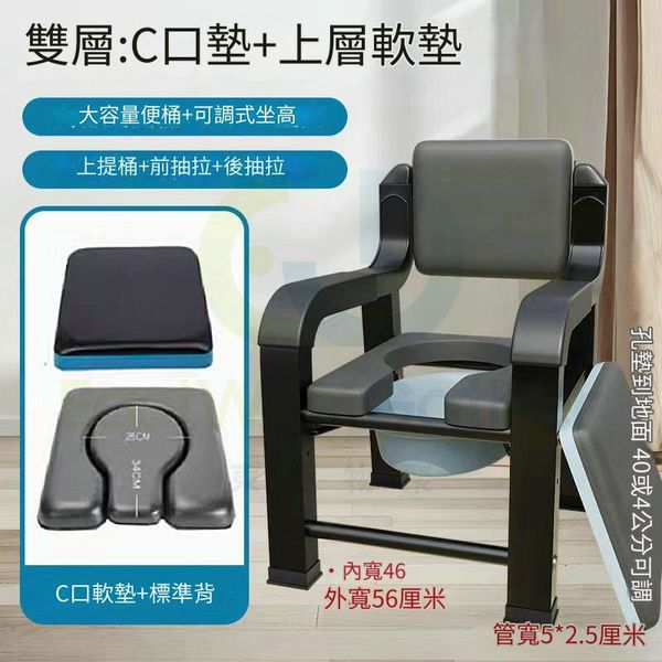 包送貨-坐便椅 老人坐便器馬桶 03雙層普上墊+C型軟墊+標準背 沐浴椅 elderly commode chair 病人護理椅 toilet seat 沖涼椅(N22274-06)
