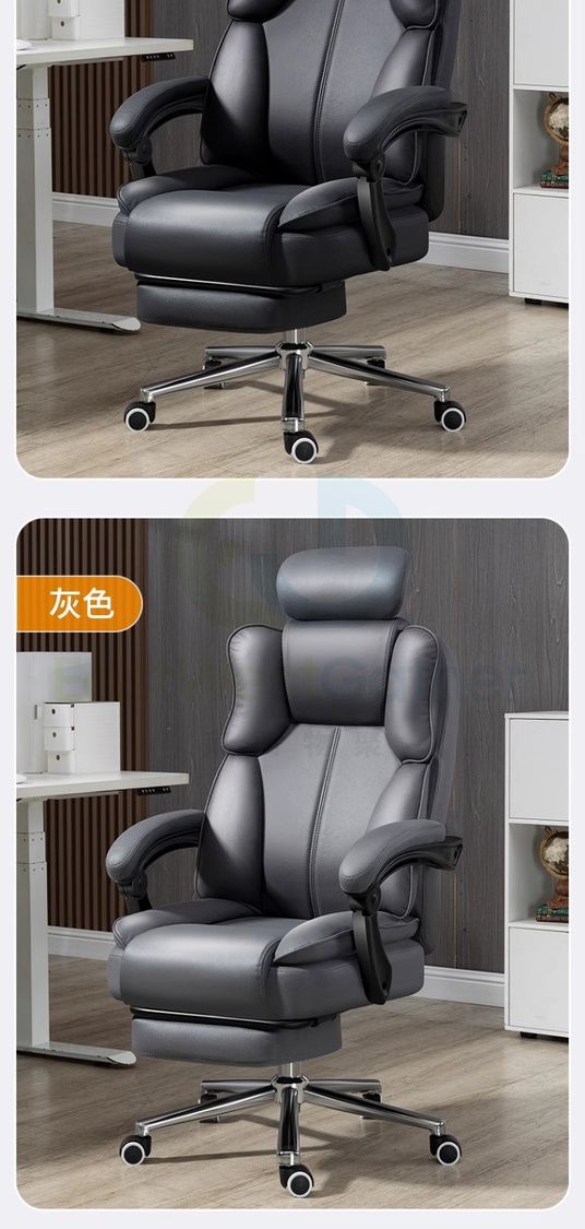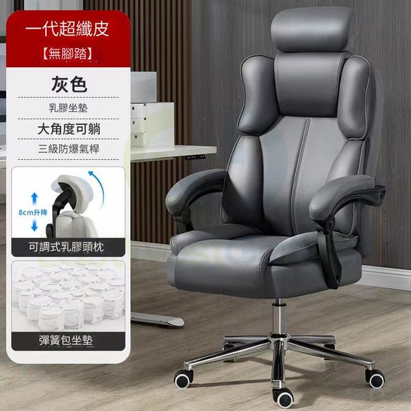 包送貨-鋼製腳 超纖皮深灰色/頭枕/內置彈簧包/三級防爆氣桿 電腦椅 辦公椅 電競椅轉椅 chair 家用學習會議 靠背座椅 書房椅(N22283-05)