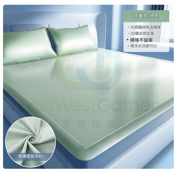 包送貨-90x200cm 加厚加寬床笠款[清新綠色 贈送枕頭套]整夜恆溫 可機洗 冰絲涼蓆 透氣涼席床單床笠 Ice silk mat sheets 春夏可折疊冰絲席(N22294-27)