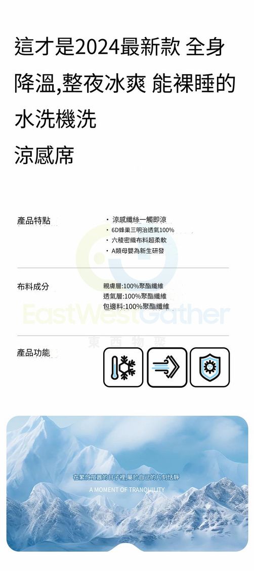 最新款全身降溫,整夜冰爽,能裸睡的水洗機洗涼感席