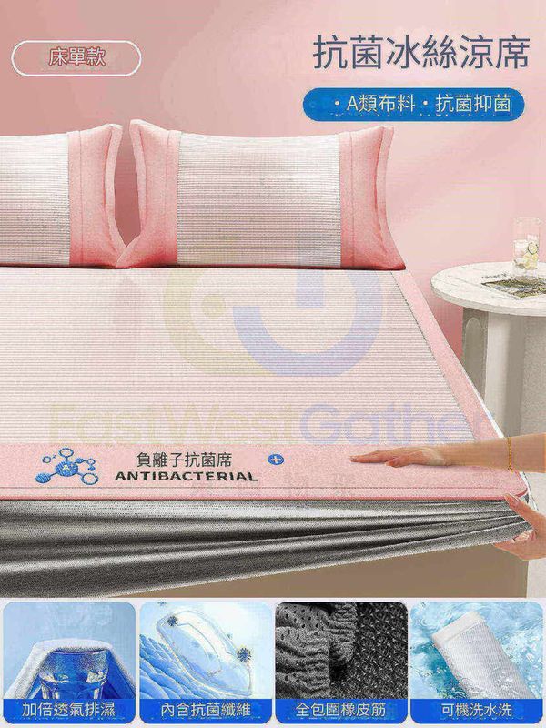 180cmx200cm [升級負離子]粉紅色-床笠款 配枕頭套[A類布料 抗菌阻蟎 快速降溫] 冰絲涼蓆床單 透氣涼席床笠 sheet 包送貨-春夏可折疊冰絲席(N22297-146)