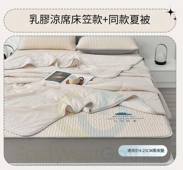 90cmx200cm 富士山-米白夏被四件套[床笠款乳膠涼席+冰絲夏被+乳膠枕套]冰絲涼蓆床單 透氣涼席床笠 mat Sheet 包送貨-春夏可折疊冰絲席(N22298-115)