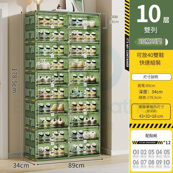 2列10層20格[可放40雙鞋] 包安裝送貨-綠色[磁吸門+可折疊]折疊鞋盒 簡易鞋櫃鞋架 Shoes cabinet 透明防塵收納 自由組合 家用簡約玄關(N22329-55)