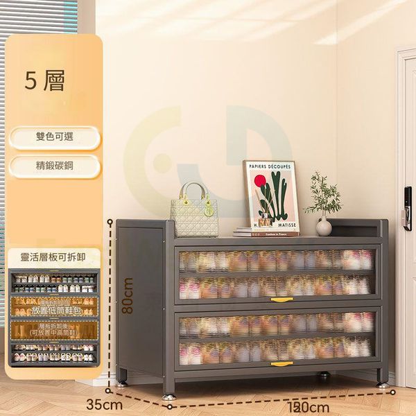 5層長120公分-新款碳鋼特厚 包安裝送貨-簡約鞋櫃鞋架 Shoes Cabinet Rack 透明防塵收納 夢幻灰櫃深35cm 家用玄關(N22331-60)