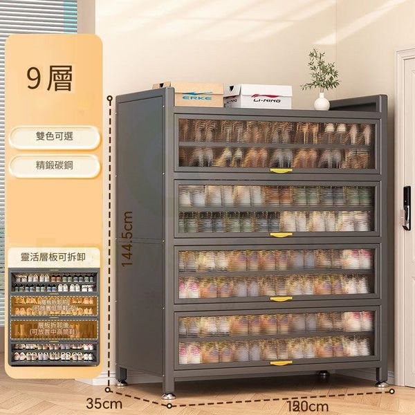 9層長120公分-防潮防黴 包安裝送貨-簡約鞋櫃鞋架 Shoes Cabinet Rack 透明防塵收納 夢幻灰櫃深35cm 家用玄關(N22331-84)