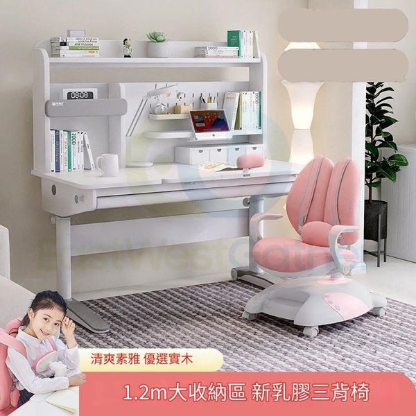 1.2m至臻雅白款+小熊三背椅 粉色 兒童書檯 學生學習枱椅 書架收納 包安裝送貨-寫字枱椅套裝 Childrens desk Student chair Bookshelf(N22374-11)