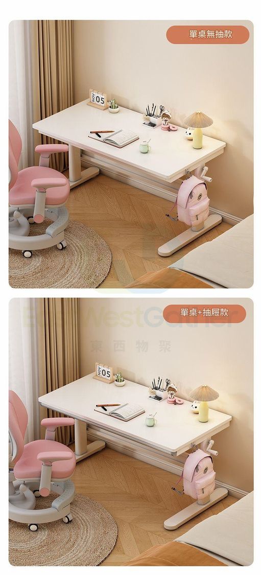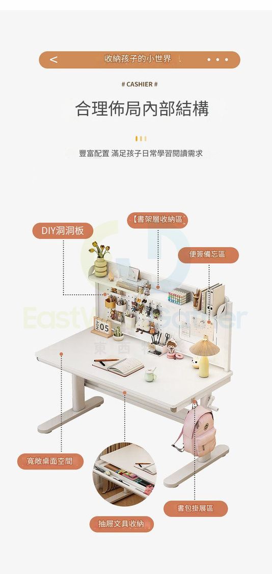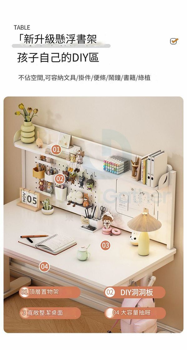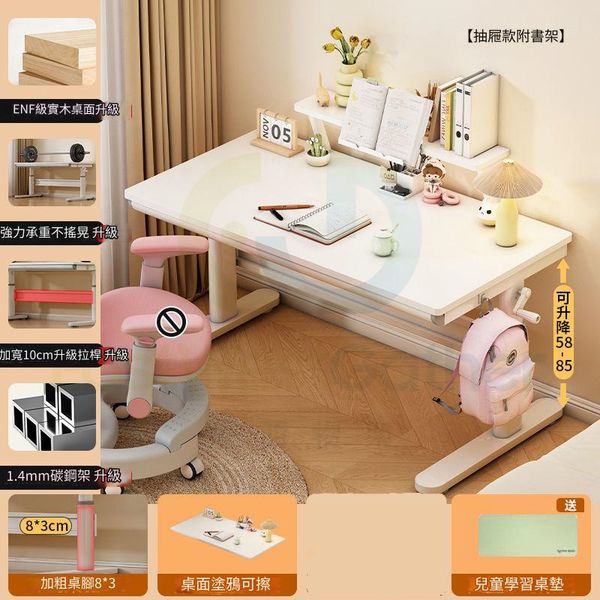 100x60x58cm實木升降桌[抽屜款帶書架] 兒童書檯 學生學習枱 書架收納 Childrens desk student chair 包安裝送貨-寫字枱套裝(N22375-14)