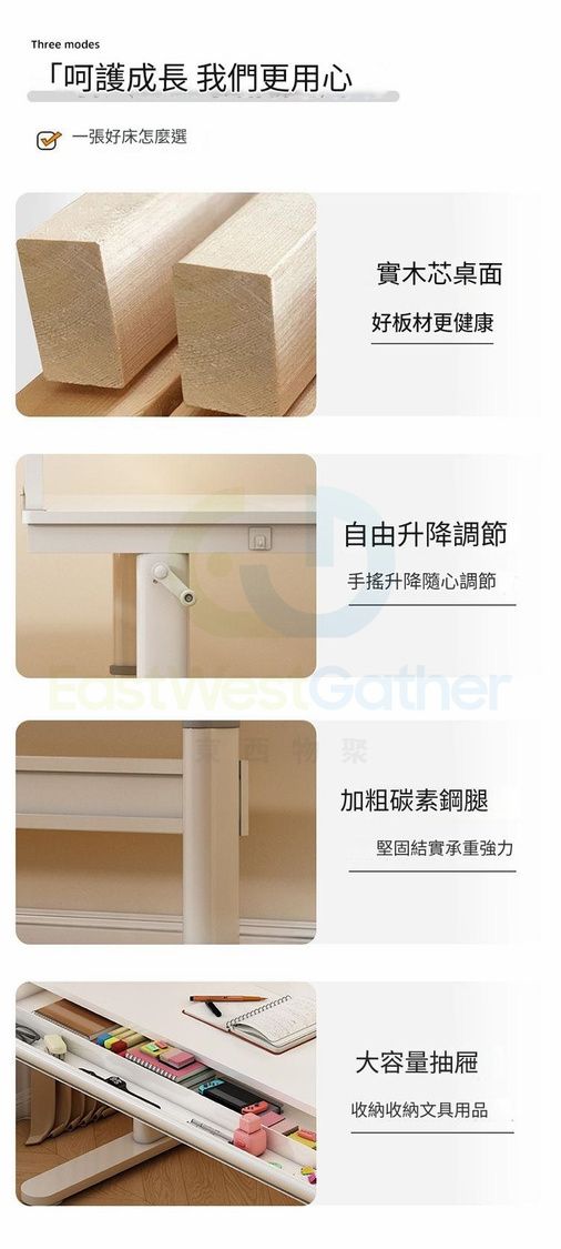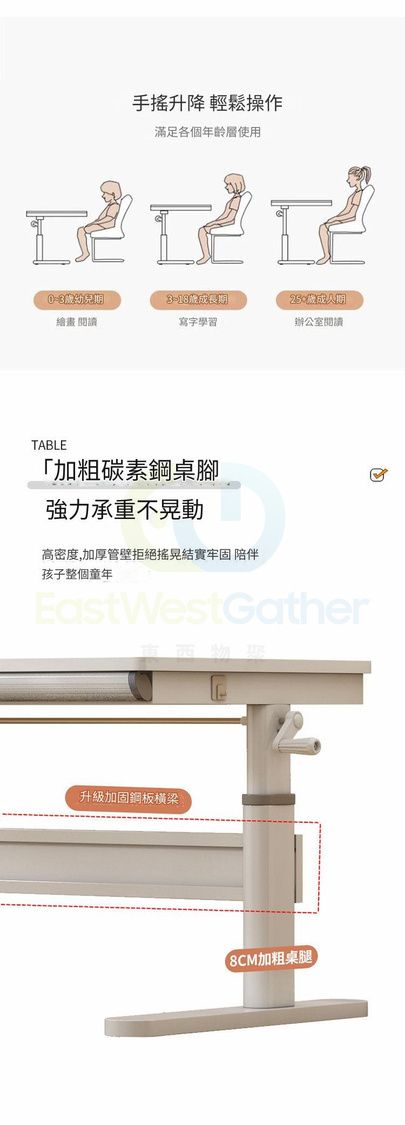 閱讀/學習/繪畫 全新升級閱讀學習桌「加厚純實木升降系列」