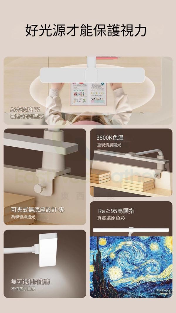 桌燈一體照亮學習區,避免側投遮擋,減少暗區,不干擾寫字視線