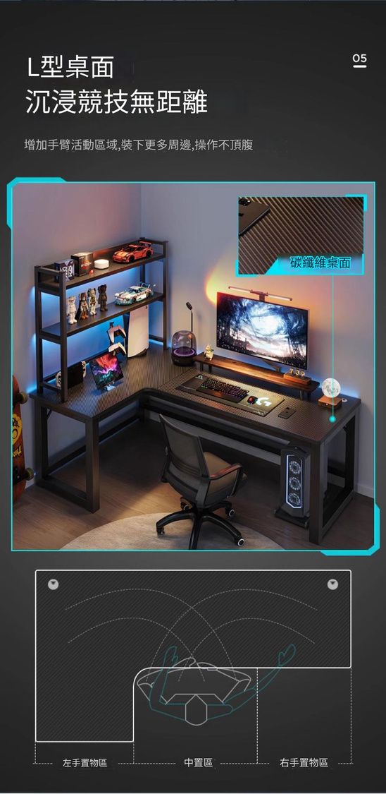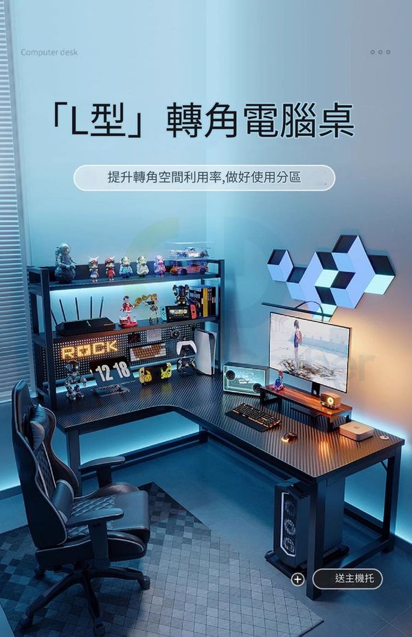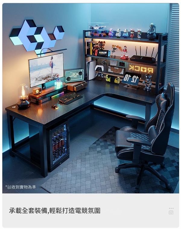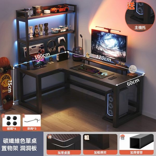 電腦枱 碳纖維左款120x100+洞洞板置物架90CM 包安裝送貨-電競遊戲桌 辦公枱 Computer Desk Office 辦公桌 電腦桌(N22406-155)