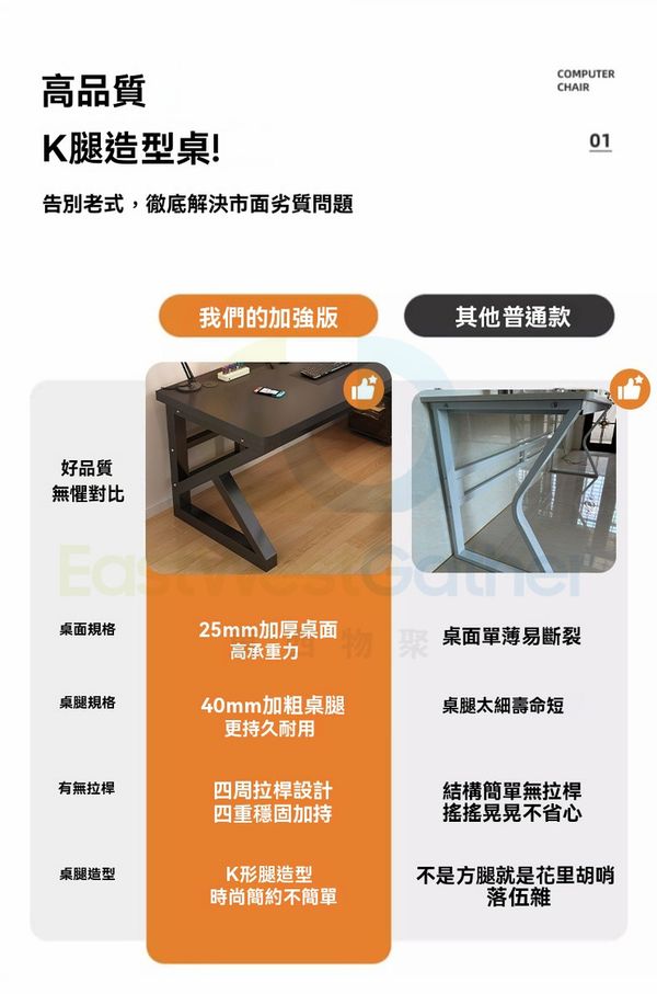 25MM加厚桌面,穩固承重不搖晃!