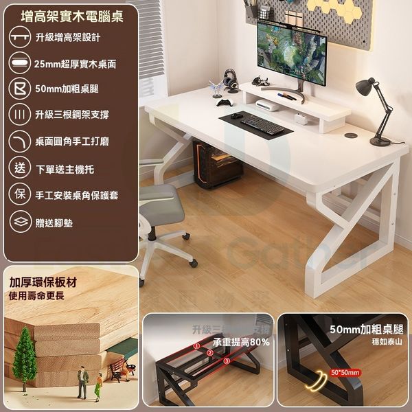 電腦枱 220x60x75cm 增高架款[升級超粗超厚全實木≈30mm]白色+白架 包送貨-電競遊戲桌 辦公枱 辦公桌 Computer desk 電腦桌(N22410-341)