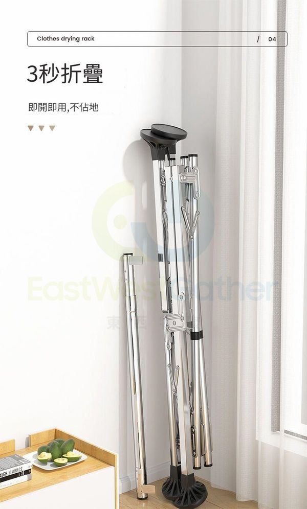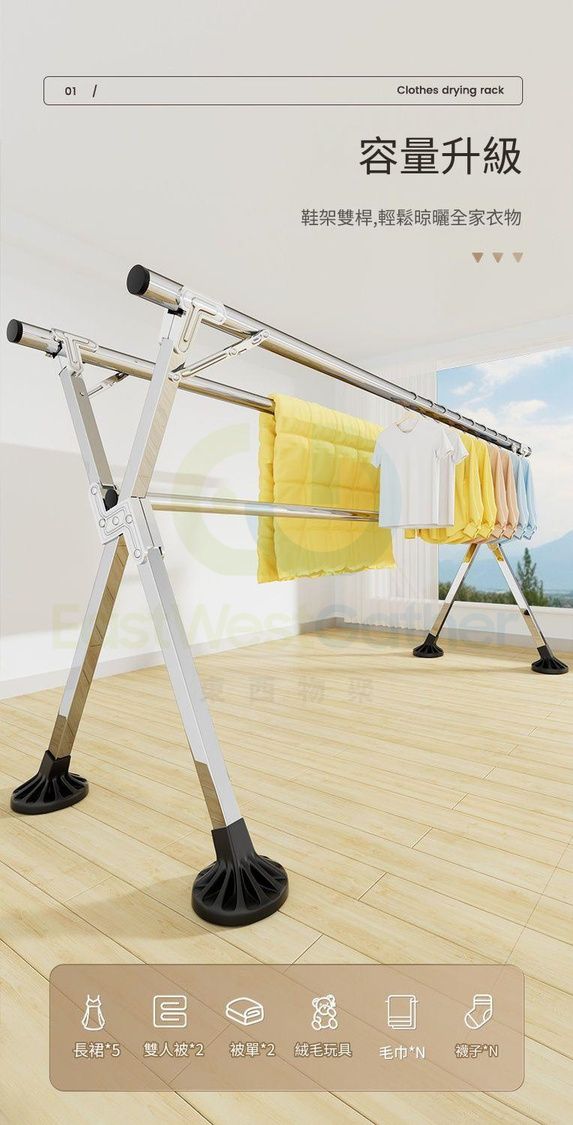 加粗加厚不鏽鋼三桿2.4米 防風大腳 晾衫架曬衣架 掛衣架晾鞋架 包送貨-可折疊+可伸縮+戶外防風 落地簡易晾衣架 Clothes drying rack 收納置物架(N22429-08)