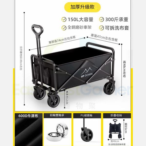 露營車拖車 [升級款]全鋼車架+萬向輪+便攜收納 包安裝送貨-戶外折疊推車 營地車 野餐車 Camper trailer cart 手拉車 擺攤釣魚(N22476-34)