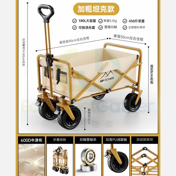 露營車 [加粗坦克款]8cm坦克輪+絲滑軸承+雙煞車+高碳鋼車架+便攜收納 包送貨-拖車 戶外折疊推車 營地車 野餐車 camp cart 手拉車 擺攤釣魚(N22478-04)