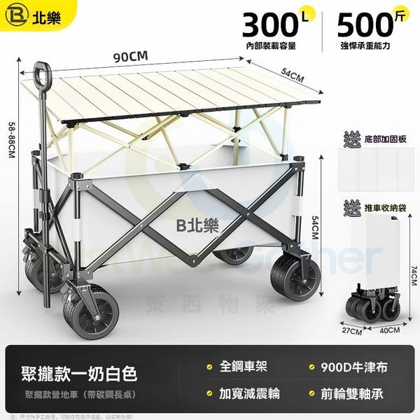露營車 推車 [聚攏款]-奶白色+米色蛋捲桌 包安裝送貨-戶外折疊拖車 營地車 野餐車 Camper Cart 手拉車 Picnic 擺攤釣魚(N22479-60)