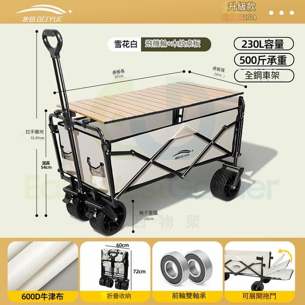 露營車 [桌板套餐]飛機輪-雪花白+木紋桌板 包安裝送貨-推車 戶外折疊拖車 營地車 野餐車 Camper Cart 手拉車 Picnic Outdoor 擺攤釣魚(N22484-36)