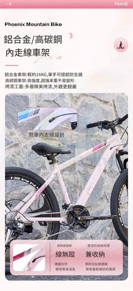 單車 27.5英寸 27速 鋁架三刀輪-粉色 包安裝送貨-山地車 自行車 Bicycle 成人腳踏車 Mountain bike 越野單車(N22488-200)
