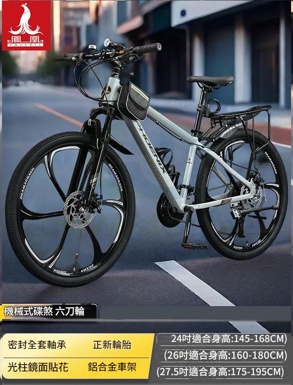 單車 27速26英寸 鳳凰正品[鋁架六刀輪]灰湖綠色 包安裝送貨-山地車 自行車 變速單車 腳踏車 越野單車(N22489-173)