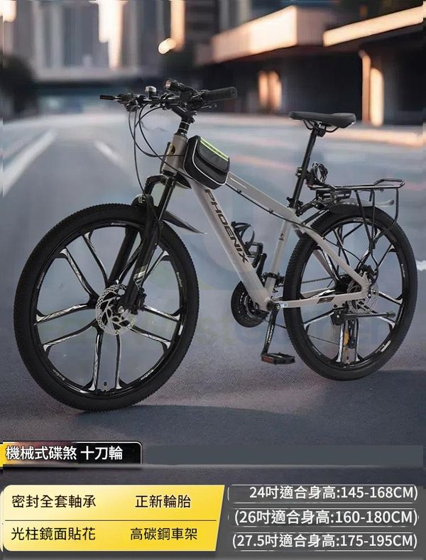 單車 27速27.5英寸 鳳凰正品[鋼架十刀輪]灰色 包安裝送貨-山地車 自行車 變速單車 腳踏車 越野單車(N22489-218)