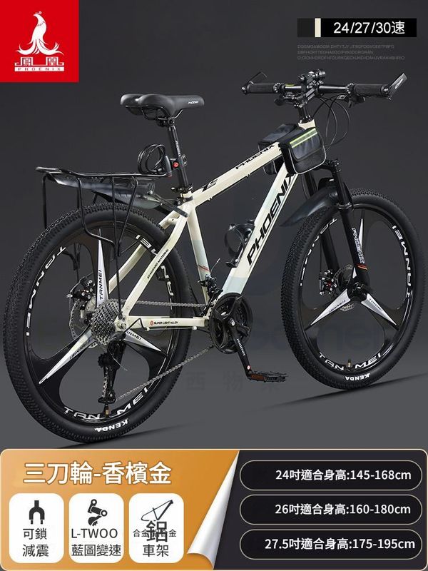 單車 27速26英吋 鋁合金升級版[香檳金]三刀輪+藍圖全套變速+全軸承傳動+建大輪胎+大禮包 包安裝送貨-山地車 自行車 變速單車 bicycle 腳踏車 越野單車(N22490-152)