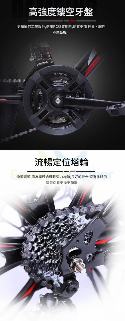 高強度鏤空牙盤,更精簡的工業設計,選用PC材質用料,使其更加 輕量、韌性不易斷裂